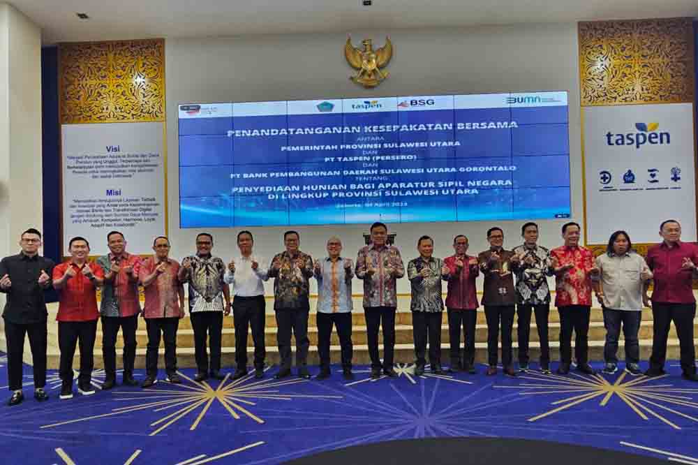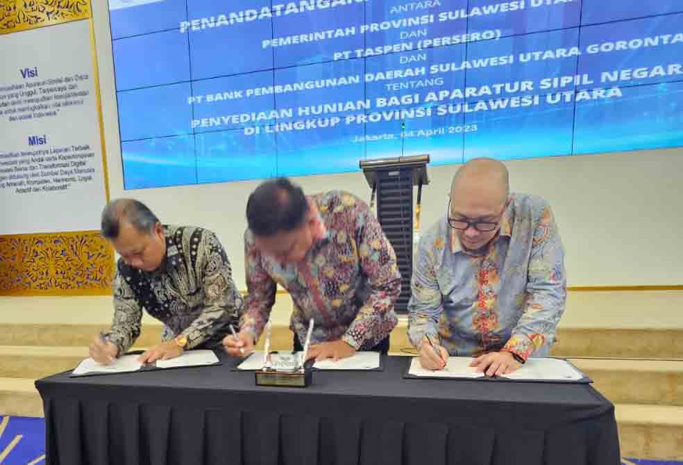 Bertempat di Kantor PT Taspen, Jakarta, Selasa (4/4/2023), Gubernur Olly Dondokambey bersama Direktur Utama PT Taspen A.N.S. Kosasih dan Dirut Bank SulutGo Revino Pepah melakukan penandatanganan kesepakatan bersama penyediaan hunian untuk ASN Pemprov Sulut yang belum memiliki rumah.