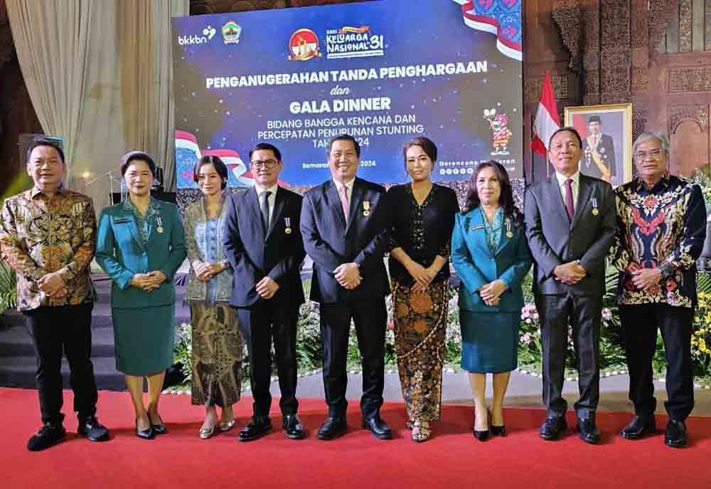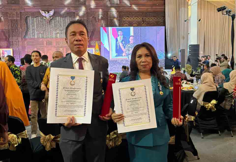 Bupati Minahasa Selatan dan Ketua TP. PKK Kabupaten Minahasa Selatan menerima Tanda Penghargaan Manggala Karya Kencana.
