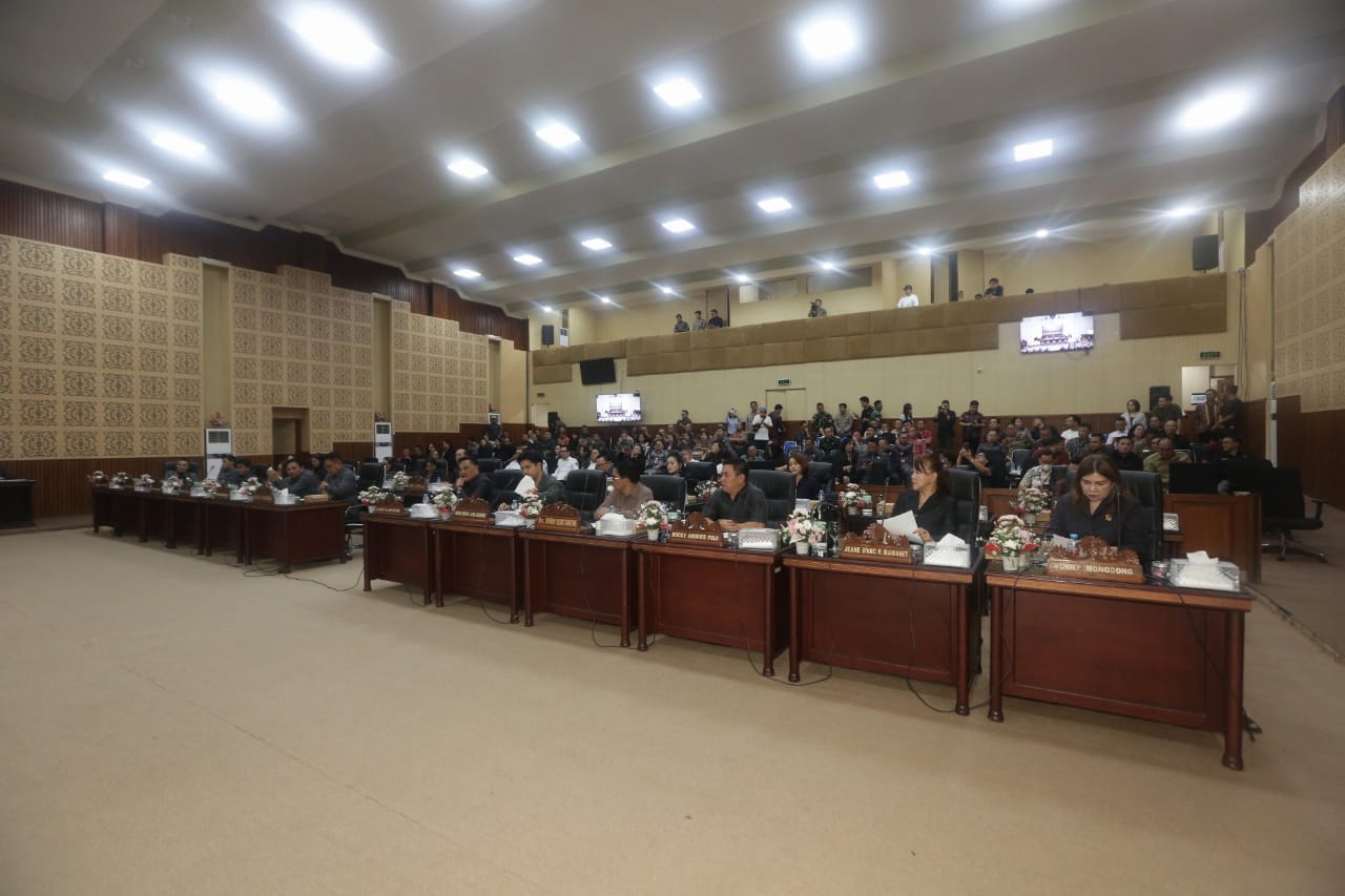 Tomohon-DPRD Kota Tomohon menggelar Rapat Paripurna, dalam rangka mengumumkan pasangan calon Caroll Senduk dan Sendy Rumajar, sebagai Walikota dan Wakil Walikota Tomohon terpilih periode 2025-2030, Kamis (06/02/2025).