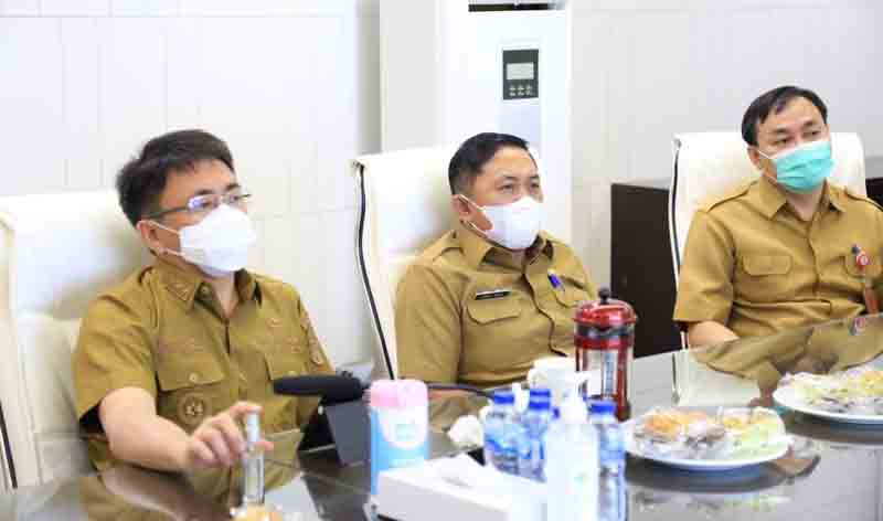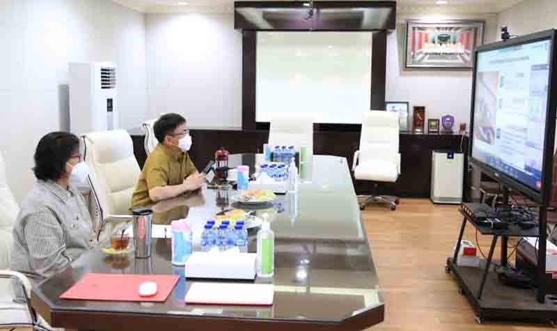 Manado – Walikota Manado Andrei Angouw bersama Ketua DPRD Manado Aaltje Dondokambey mengikuti Video Conference bersama Mendagri, Ketua KPK, Kepala LKPP dengan kepala Daerah dan Ketua DPRD Provinsi, Kabupaten/Kota, di Ruang Kerja Walikota Manado, Senin (24/01/2022).