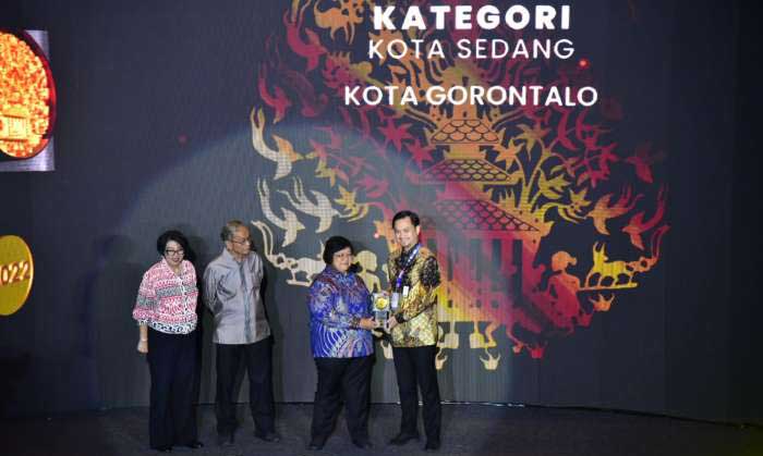 Kota Gorontalo – Kota Gorontalo kembali memperoleh piala adipura untuk tahun 2022. Penghargaan di bidang kebersihan dan pengelolaan lingkungan itu diserahkan Menteri Lingkungan Hidup dan Kehutanan RI Siti Nurbaya kepada Wakil Walikota Gorontalo Ryan Kono.