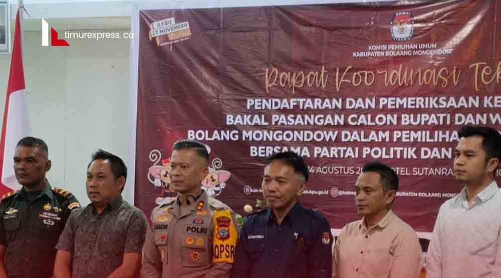 Rakornis yang dibuka oleh Ketua KPU Bolmong Afif Zuhri menghadirkan sejumlah Narasumber diantaranya  dari Dinas Kesehatan Kabupaten Bolmong yang diwakili Sekertaris Dinas Yusuf Detu, BNN Bolmong yang diwakili Kasubag Umum Faradilla Schoe, SS, Kapolres Bolmong AKBP. Muhammad Chaidir, SIK dan Kapolres Kotamobagu yang diwakili Kabag Ops Kompol Luther Ta’dung.Afif mengatakan,  berdasarkan PKPU Nomor 8 Tahun 2024 tahapannya pendaftaran Paslon Bupati dan Wabup Bolmong itu akan dilaksanakan mulai tanggal 27 hingga 29 Agustus 2024.