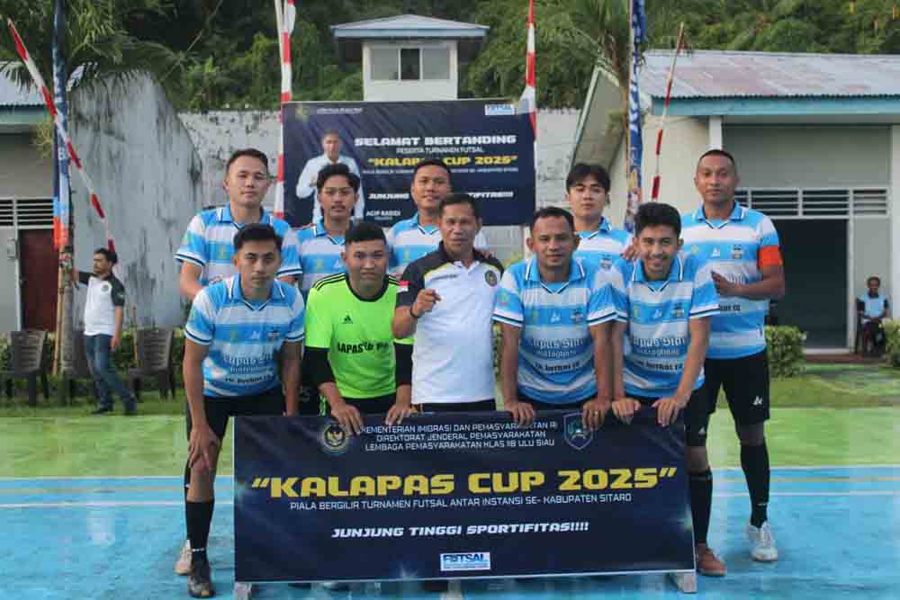SITARO-Dalam rangka memperingati Hari Bakti Kementerian Imigrasi dan Pemasyarakatan ke-1 serta menyambut Pra Natal Tahun 2025, Lembaga Pemasyarakatan (Lapas) Klas IIB Ulu Siau menggelar Turnamen Futsal Kalapas Cup antar instansi pemerintah daerah maupun instansi vertikal se-Kabupaten Kepulauan Sitaro.