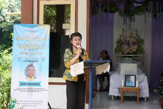 Dalam sambutannya, Bupati Chynita Ingrid Kalangit menyampaikan duka yang mendalam atas kepergian Almarhum Bapak Akson Tahulending, yang merupakan ayahanda tercinta dari Ibu Jetnizyen Tahulending, seorang pegawai di Dinas Perindustrian, Perdagangan dan Tenaga Kerja Kabupaten Kepulauan Sitaro.