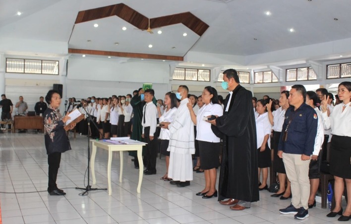 Tahuna – Penjabat Bupati Kabupaten Kepulauan Sangihe, dr Rinny Tamuntuan yang berkenan hadir pada Pelantikan Anggota Panitia Pemungutan Suara (PPS) sekabupaten Sangihe di Papanuhung Tampungang lawo Rumjab Bupati pada selasa (24/1/23) menyampaikan, melalui pelantikan ini menandakan bahwa Komisi Pemilihan Umum (KPU) Sangihe dan badan Ad hoc siap melaksanakan dan mengsukseskan pemilu 2024 mendatang.