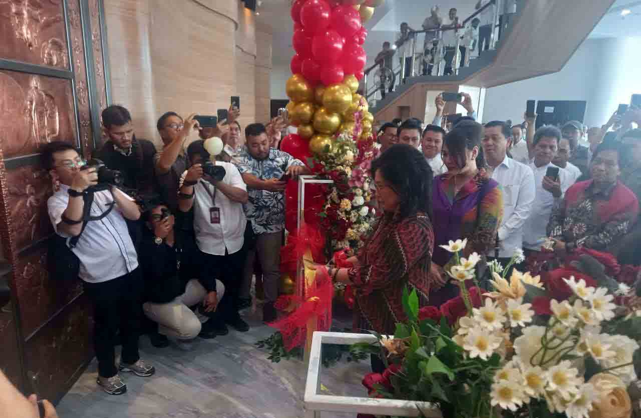 Selanjutnya Ketua TP PKK Provinsi Sulut, Ir Rita Maya Dondokambey-Tamuntuan mendapat kesempatan melakukan pengguntingan pita didampingi Sekretaris TP PKK, Kartika Devi Kandouw-Tanos.