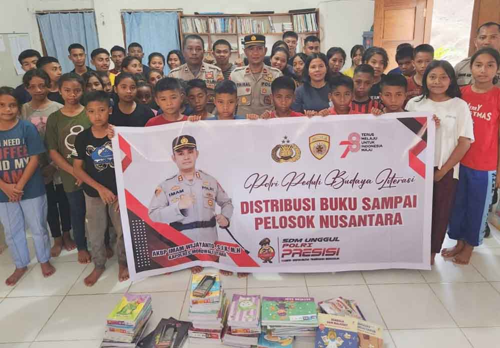 Program yang di canangkan oleh Kapolri tersebut, diwujudkan oleh jajaran Polres Morut dengan cara membagikan buku literasi dan alat tulis, di sejumlah Pondok Pesantren, Panti Asuhan serta sekolah-sekolah di Morut.