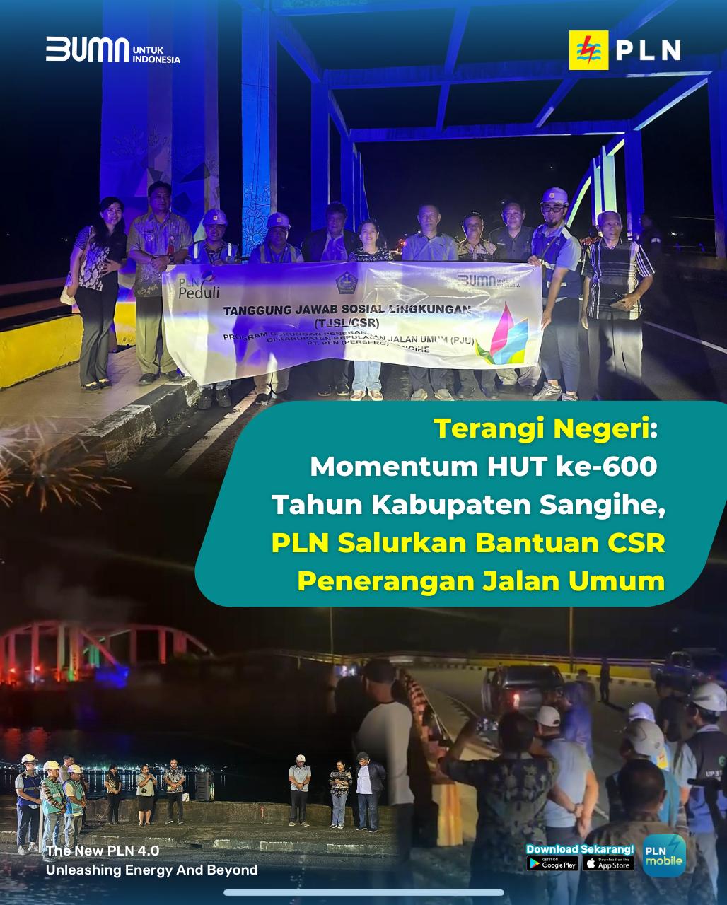 “PLN berkomitmen untuk terus mendukung setiap rencana dan program Pemerintah Kabupaten Kepulauan Sangihe. Melalui momentum HUT ke-600 ini, bantuan CSR yang berupa Penerangan Jalan Umum dapat memberikan manfaat bagi seluruh elemen masyarakat,” ujar Fauzan.
