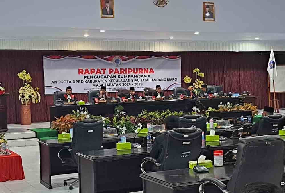 Sitaro,-Dalam sebuah prosesi yang sederhana namun bermakna, Sekretaris Dewan Perwakilan Rakyat Daerah (DPRD) Kabupaten Kepulauan Siau Tagulandang Biaro, Masri M. Kasehung, SH, membacakan Surat Keputusan mengenai penetapan pimpinan sementara DPRD, Senin (2/9/2024).