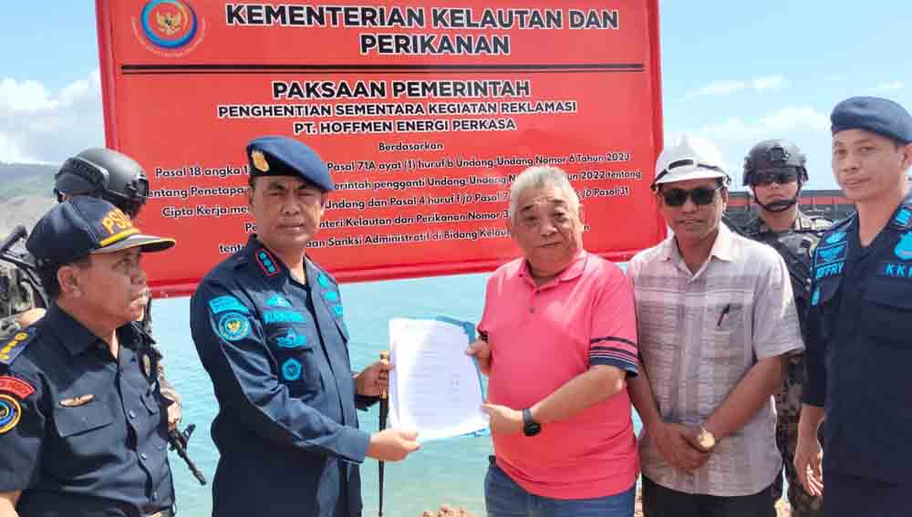 Bitung,-Kementerian Kelautan dan Perikanan (KKP) kembali menghentikan kegiatan pemanfaatan ruang laut berupa pembangunan jetty seluas 1,192 (ha) batuan milik PT HEP yang tidak dilengkapi dengan dokumen Persetujuan Kesesuaian Kegiatan Pemanfaatan Ruang Laut (PKKPRL) di pesisir Desa Wawatu, Kecamatan Moramo Utara, Kabupaten Konawe Selatan, Provinsi Sulawesi Tenggara.