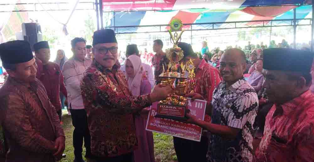 Usai sambutan Bupati dilanjutkan, penyerahan hadiah Monuntul kepada pemenang, dengan hadiah berupa trophy dan uang. (*Advetorial)