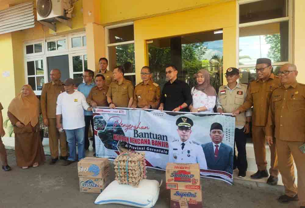 Sementara itu di juga selain dari Seumbangan Sembako di kota Gorontalo di Kabupaten Gorontalo juga dibagikan 1000 makanan siap saji, bahan makanan untuk dapur umum, pakaian yang masih layak pakai serta popok untuk lansia dan juga untuk balita.