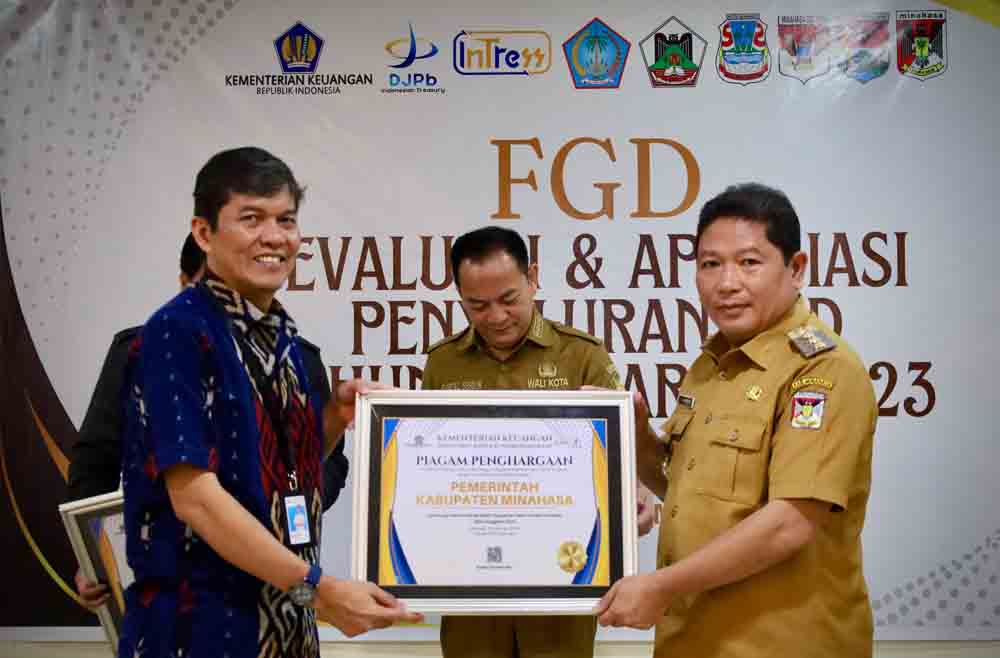 Penghargaan diserahkan langsung oleh Kepala KPPN Manado Asep Syaefudin kepada Penjabat Bupati Minahasa, Dr Jemmy Stani Kumendong didampingi Sekda, Dr Lynda Watania, MM, MSi serta Kepala Badan Aset dan Pengelolaan Keuangan Daerah Minahasa, Joice M. Pua, SE.
