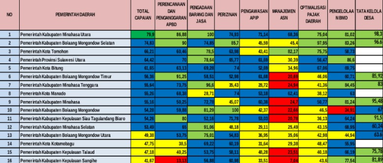 Capaian ini mengungguli seluruh Pemerintah Provinsi Sulawesi Utara serta 14 kabupaten dan kota lainnya di daerah tersebut.