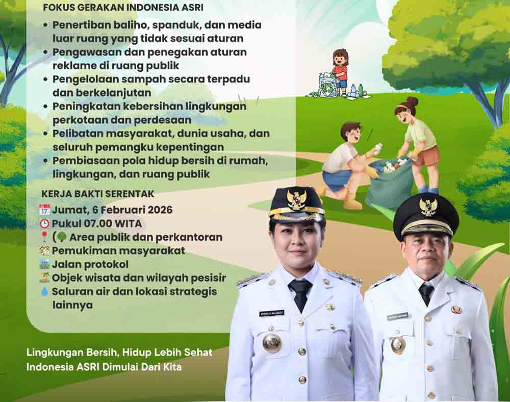 Kegiatan Gerakan Indonesia ASRI dilaksanakan secara serentak pada Jumat, (6/2/2026) dengan melibatkan seluruh perangkat daerah, instansi vertikal, pemerintah kecamatan, kelurahan dan kampung, satuan pendidikan, serta elemen masyarakat sesuai dengan tugas dan fungsi masing-masing.