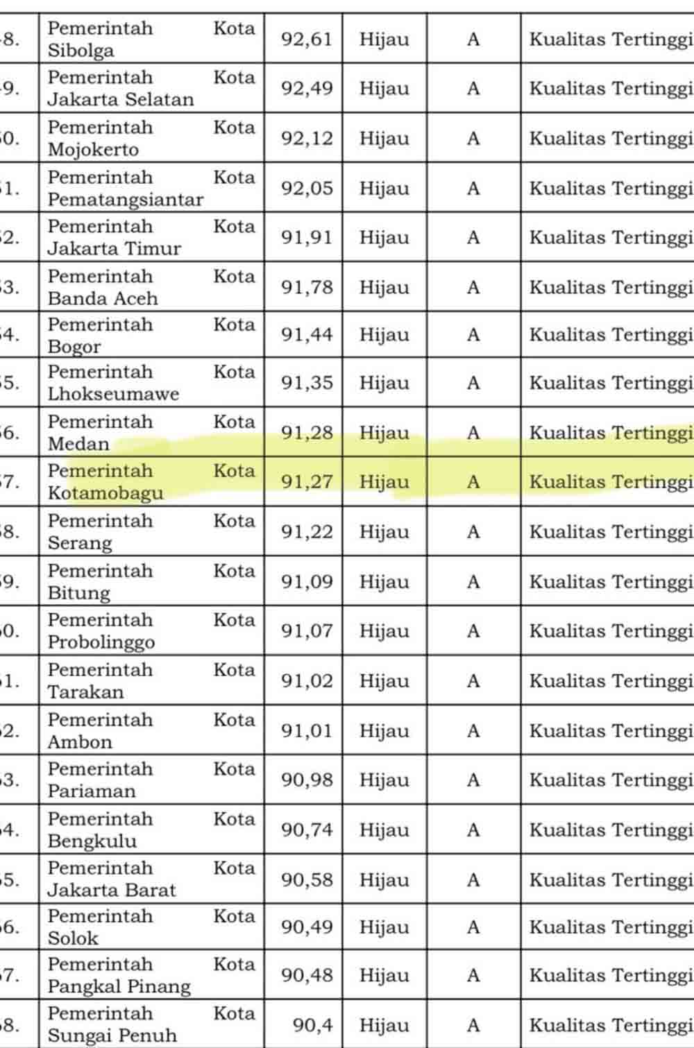 Kotamobagu- Pemerintah Kota Kotamobagu kembali berhasil meraih prestasi tingkat Nasional atas diraihnya kategori A, Zona Hijau dengan opini Kualitas Tertinggi dari Ombudsman Republik Indonesia (RI).