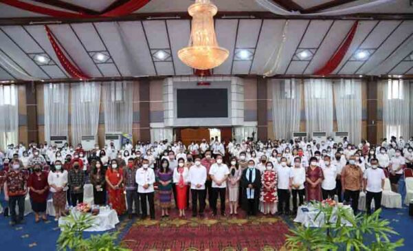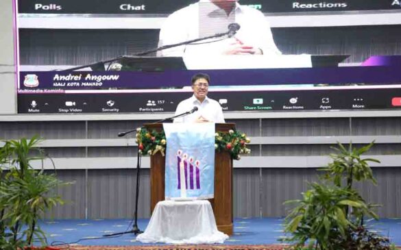Manado– Wali Kota Manado Andrei Angouw bersama Wakil Wali Kota Richard Sualang menghadiri Ibadah Pra Natal Yesus Kristus Pemerintah Kota Manado yang dilaksanakan di aula Serbaguna Pemerintah Kota Manado. Rabu (01/12/2021).