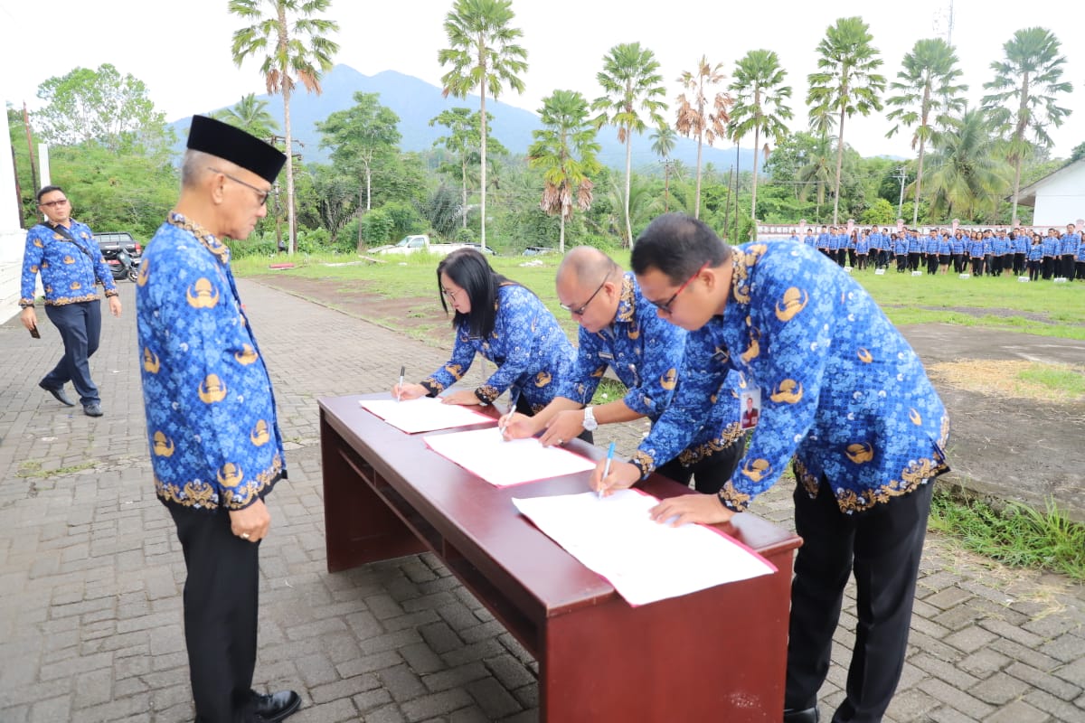 RedaksiSulut, Mitra – Para pejabat tinggi pratama di lingkungan Pemerintah Kabupaten Minahasa Tenggara (Mitra) menandatangani pakta integritas dan perjanjian kerja, Rabu (17/1/2024), di Lapangan kantor DPRD Mitra saat apel KORPRI.