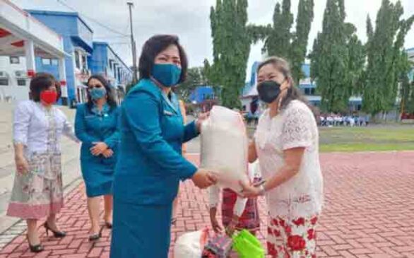 Bitung, Redaksisulut – Peringati hari Ibu ke-93, Istri Wakil Wali Kota Bitung, Hengky Honandar, SE, Ny Ellen Sondakh pimpin upacara di Tribun Kantor Wali Kota Bitung. Rabu, (22/12/2021).