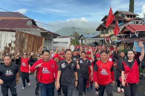 Tomohon –Dewan Pimpinan Cabang (DPC) PDI Perjuangan Kota Tomohon menggelar jalan sehat Ganjar-Mahfud yang dipimpin langsung oleh Ketua DPC PDIP Kota Tomohon Caroll Senduk.