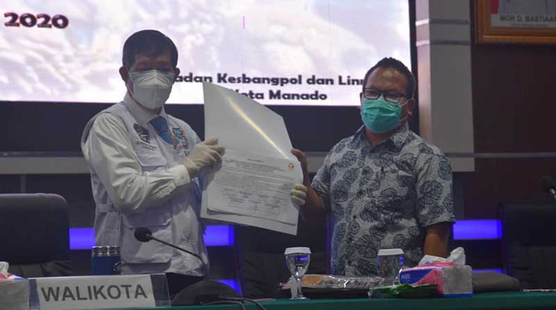 MANADO– Untuk mendorong dan menjaga ASN bersikap netral dalam Pilkada 2020 serentak di Kota Manado pada Pemilihan Gubernur Sulawesi Utara dan Wakil Gubernur serta Walikota Manado dan Wakil Walikota, Maka Pemerintah Kota (Pemkot) Manado melalui Badan Kesbangpol dan Linmas melaksanakan sosialisasi terkait pelaksanaan Pilkada Tahun 2020 dirangkaikan dengan Penandatanganan pakta integritas netralitas Aparatur Sipil Negara Pemerintah Kato Manado dengan Badan Pengawas Pemilu Kota Manado. Bertempat di Aula Serbaguna Kantor Walikota Manado. Rabu (30/09/2020).
