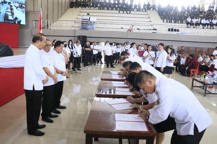 Minahasa – Wakil Bupati Minahasa DR (HC) Robby Dondokambey SSi MM,memimpin Apel kerja perdana Tahun 2023, bertempat di Gedung Wale Ne Tou Tondano,Rabu (4/1/2023).