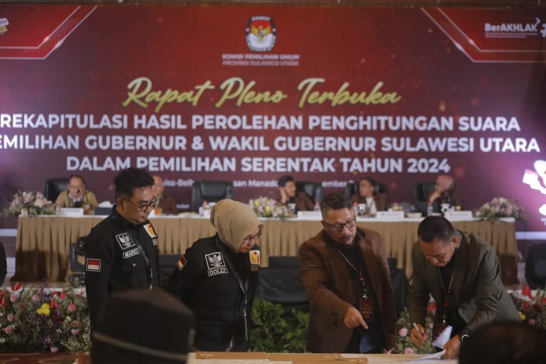Hasil rekapitulasi itu dituangkan dalam Keputusan KPU Sulut Nomor 866 Tahun 2024 tertanggal 7 Desember 2024, tentang Penetapan Rekapitulasi Hasil Penghitungan Perolehan Suara Pilgub 2024. Penetapan dilakukan rapat pleno terbuka yang dipimpin Ketua KPU Sulut Kenly Poluan.