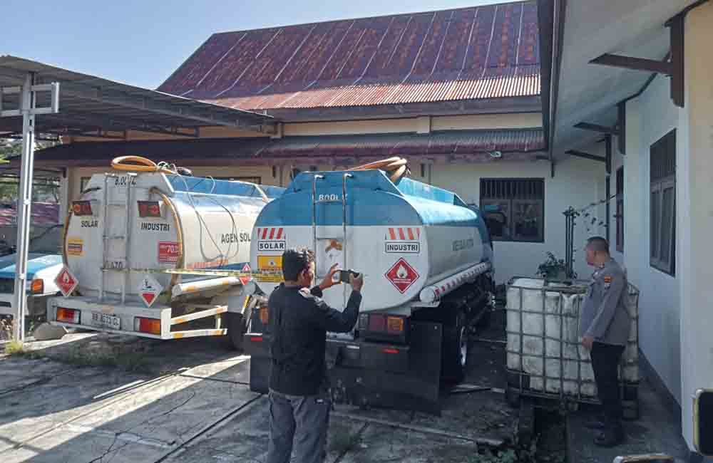 “Dari informasi tersebut unit tipiter langsung dipimpin oleh Kasat Reskrim, turun ke TKP dan dimana di TKP menemukan ada 2 unit kendaraan BBM solar berwarna biru dan setelah dilakukan pengecekan, tidak ditemukan dokumen sah terhadap kegiatan Niaga BBM solar bersubsidi yang dilakukan oleh PT. CPJ dengan nama direktur inisial JF di kelurahan Sagerat Kecamatan Matuari”. Kata Kapolres.