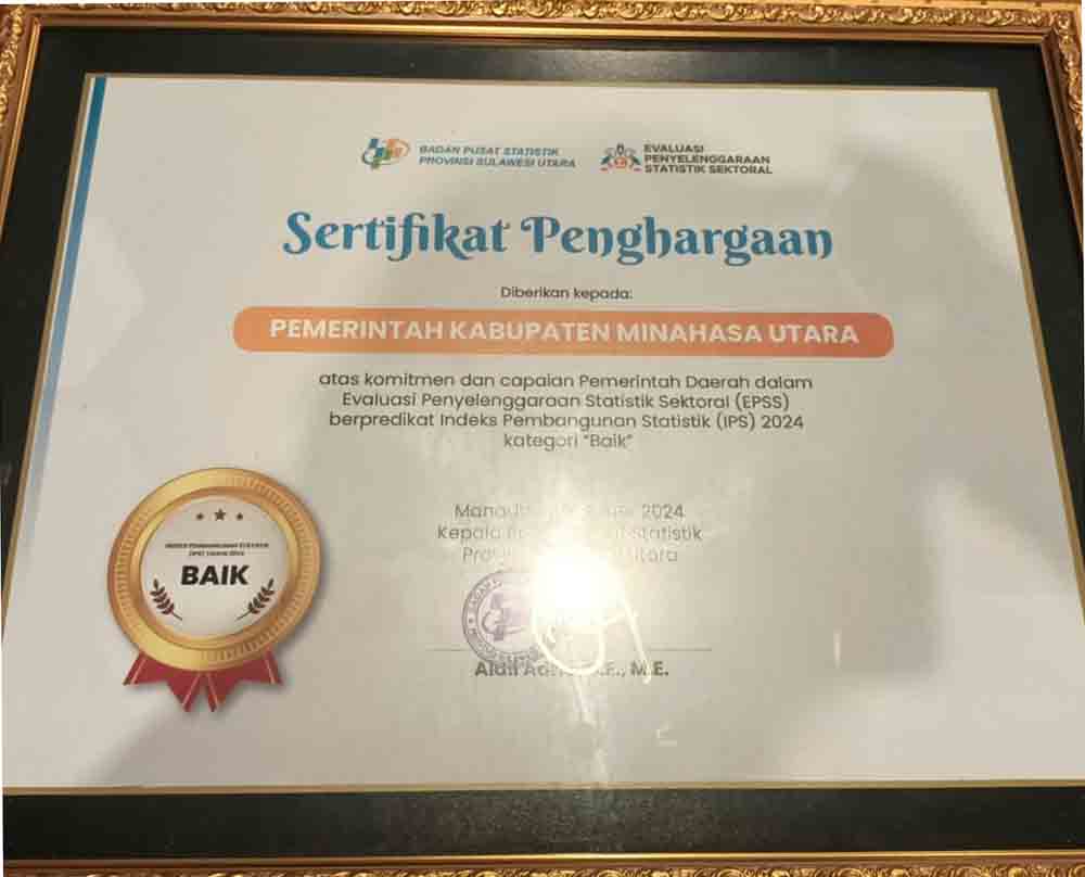 Minut– Minahasa Utara terus menegaskan diri sebagai daerah yang berprestasi, kali ini melalui penghargaan Indeks Pembangunan Statistik (IPS) 2024.