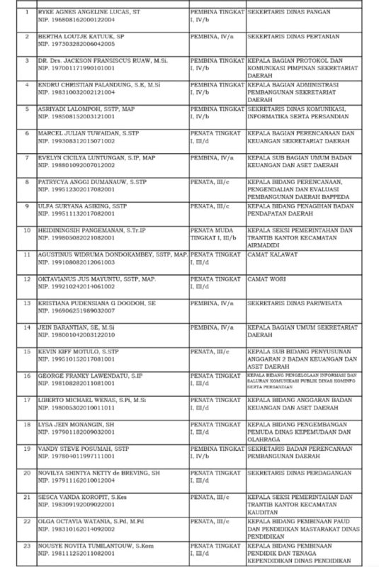 Ia menambahkan, para pejabat yang baru dipercaya memegang posisi strategis diharapkan menjadi agen perubahan yang responsif dan memberikan kontribusi nyata bagi kemajuan Minahasa Utara.