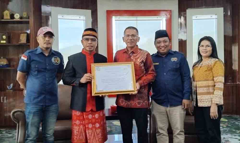 Dalam kegiatan tersebut, PWI Sulut memberikam piagam penghargaan kepada penjabat bupati bolmut sebagai tokoh peduli pers. (R)