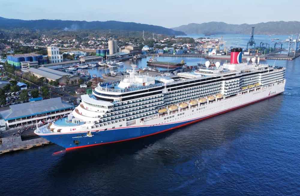 Bitung, Redaksisulut – Kapal pesiar MV. Carnival Luminosa tiba dan berlabuh di Pelabuhan Samudera Bitung. Sabtu, (7/10/2023).