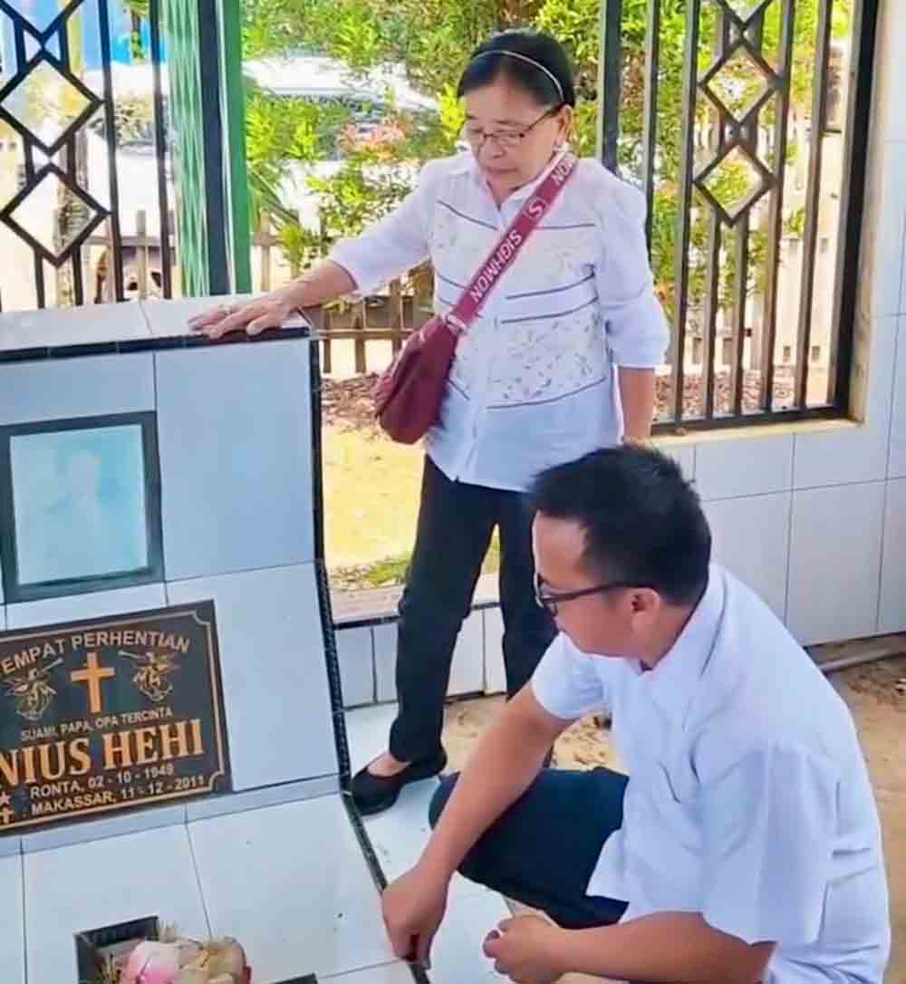 Di dampingi istri tercinta Febrianti Hongkiriwang Ssi Apt, dan ibunda terkasih mereka melakukan ziarah ke makam ayahandanya, Nius Hehi yang meninggal tahun 2011.