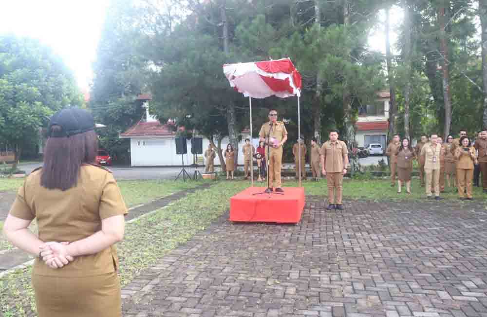 Tomohon-Sekretaris Daerah Kota Tomohon Edwin Roring SE ME memimpin Apel Kerja Awal Bulan Pemerintah Kota Tomohon, di Lapangan Kantor Walikota Tomohon, Senin (03/02/2025).
