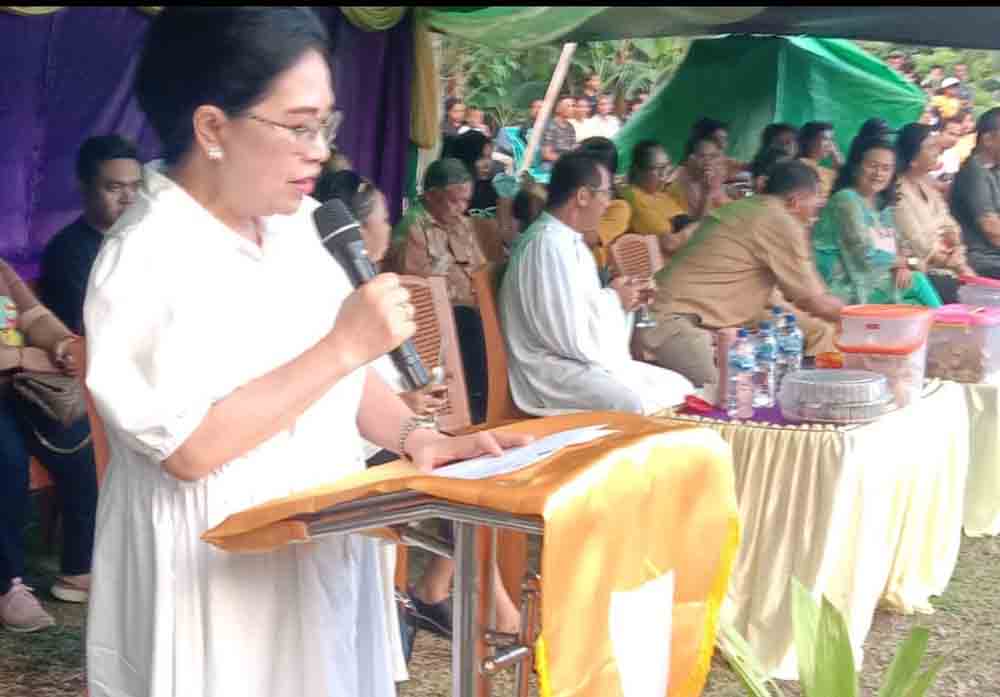 Penjabat Bupati Rinny Tamuntuan saat membawakan sambutan pada perayaan Paskah di Kampung Kalasuge (Foto Ist)