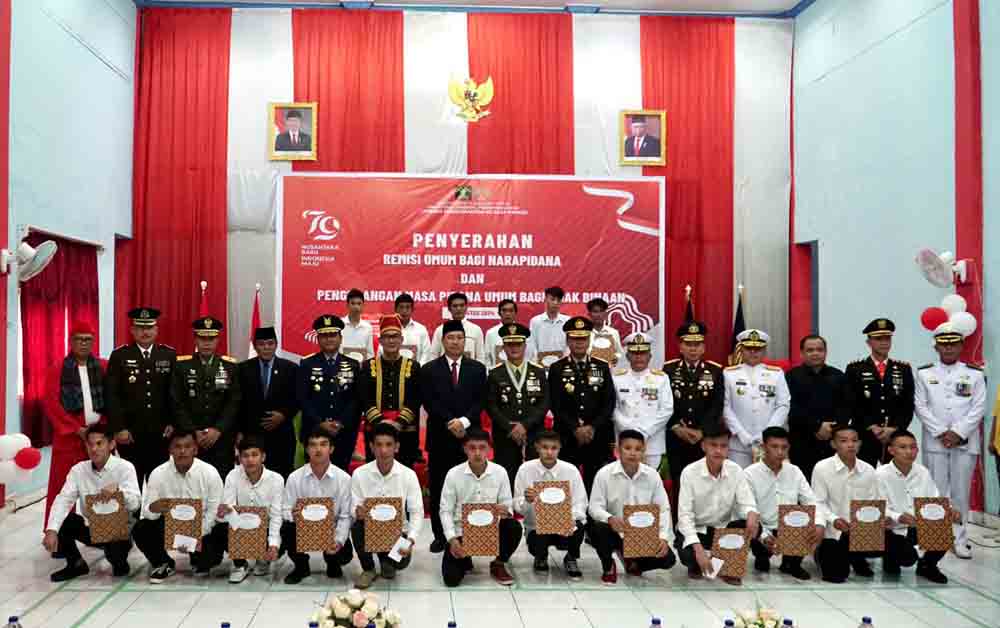 Penyerahan remisi umum bagi narapidana dan pengurangan masa pidana umum bagi anak binaan dilakukan secara seremonial di Lapas Kelas II Manado, Sabtu (17/8/2024).
