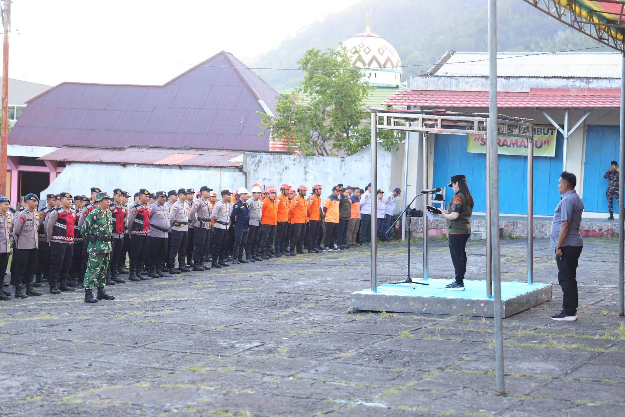 Dalam sambutannya, Bupati Chyntia Kalangit menyampaikan rasa syukur kepada Tuhan Yang Maha Esa atas penyertaan-Nya sehingga seluruh rangkaian penanganan darurat dapat dilalui dengan baik, meski wilayah Sitaro khususnya Pulau Siau sempat dilanda cuaca ekstrem berupa hujan lebat, banjir bandang, tanah longsor, dan angin kencang.