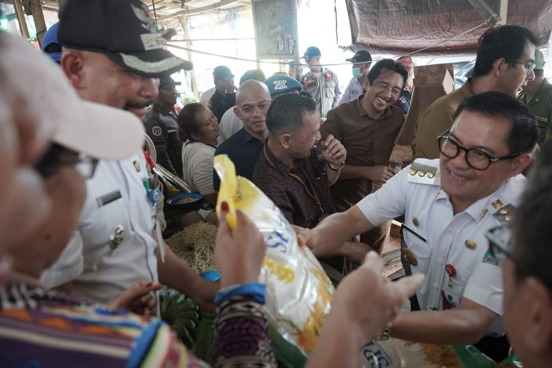 Bertempat di Pasar Kema, Kecamatan Kema Bupati Minahasa Utara Joune Ganda turun langsung dalam operasi pasar tersebut guna memastikan ketersediaan pangan tetap terjaga. Rabu (11/9/2023).