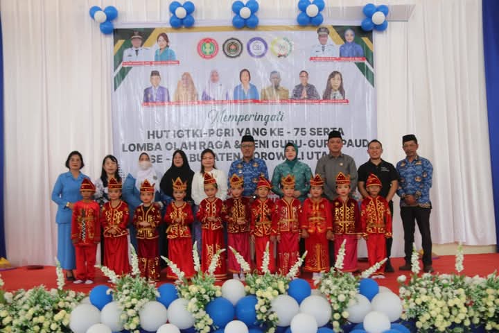 Morut-Wakil Bupati (Wabup) Morowali Utara (Morut) , H Djira K SPd MPd, menghadiri peringatan Hari Ulang Tahun (HUT) Ke-75 Ikatan Guru Taman Kanak-Kanak Indonesia (IGTKI) PGRI, dirangkaikan dengan Lomba Olah raga dan Seni Guru-Guru PAUD di Morut, di Gedung Morokoa Kolonodale, Senin (02/06/2025 ).