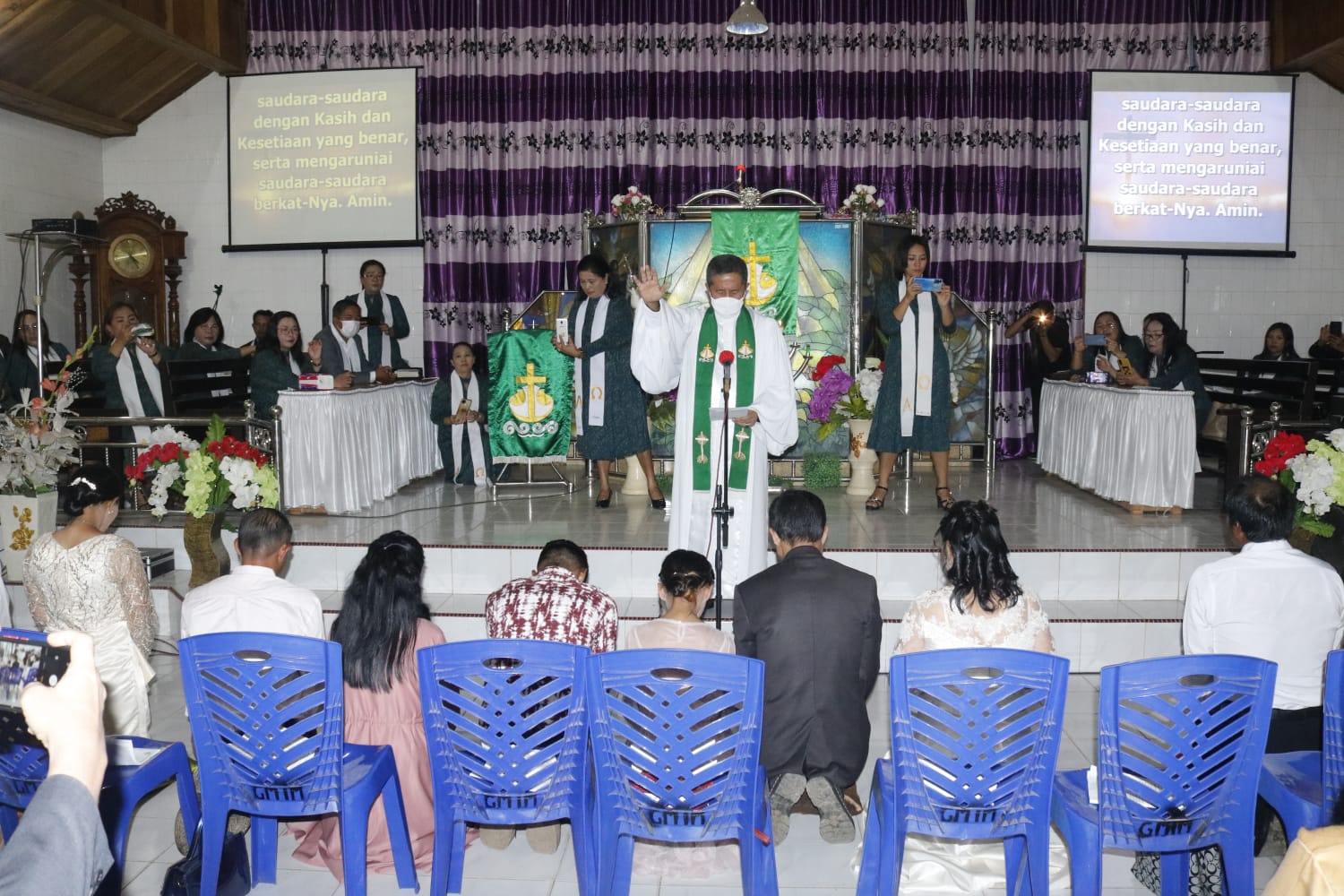Minsel– Wakil Bupati Minahasa Selatan Pdt. Petra Yani Rembang hadir dan Menjadi Khadim Pada Peneguhan/Pemberkatan Nikah Massal, yang turut didampingi Sekretaris TP-PKK Kabupaten Minahasa Selatan Ny. Rembang Juliwati, bertempat di Gedung Gereja GMIM Moria Wulurmaatus, Wil. Modoinding, Kecamatan Modoinding,Jumat (02/09/2022).