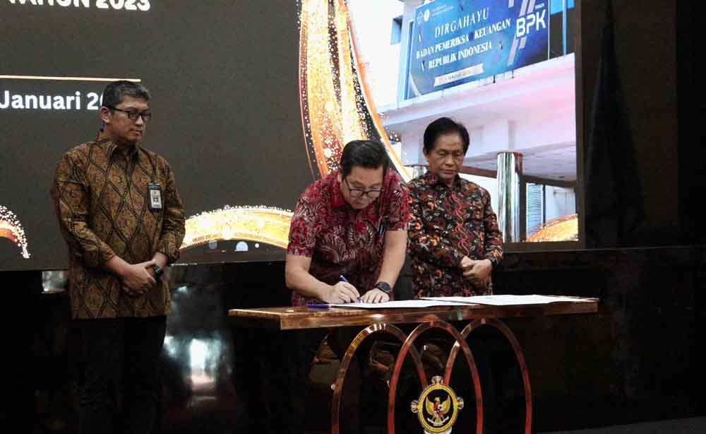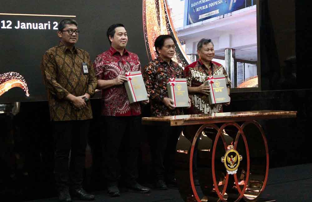 Sulut-Wakil Gubernur Sulawesi Utara, Steven Kandouw menyerahkan laporan hasil pemeriksaan semester II tahun 2023 terkait pemeriksaan kinerja atas efektivitas upaya pemda dalam penyelengaraan Kawasan Ekonomi Khusus Industri Bitung (KEK Industri Bitung), Jumat (12/01/2024).