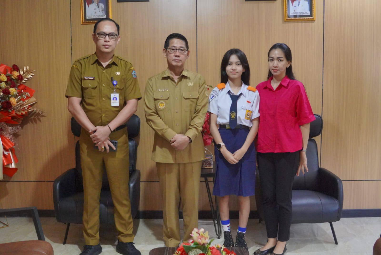 Wali Kota Honandar berharap keberhasilan Kayla dapat menjadi motivasi bagi pelajar lain di Kota Bitung untuk terus berprestasi.