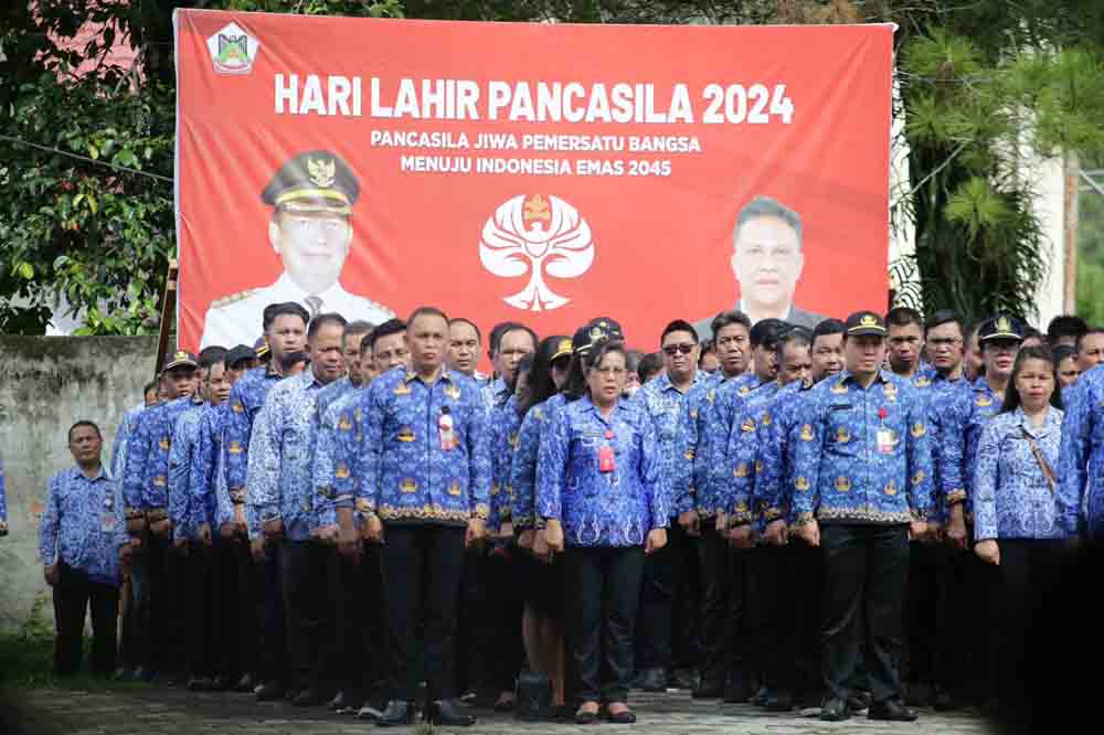 Tomohon-Wali Kota Tomohon Caroll J A Senduk SH, memimpin upacara Peringatan Hari Lahir Pancasila tahun 2024, bertempat di Lapangan Kantor Wali Kota. Sabtu (1/6/2024).