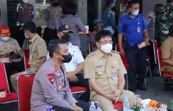 Turut hadir Asisten I Pemerintah Kota Manado Heri Saptono dan beberapa Kepala SKPD dan pejabat Pemerintah Kota Manado, Satgas Covid Kota Manado, Basarnas, BNPB, BPBD, Dishub, TNI AL, Babinsa, Tagana, Damkar, Pol PP, Satgas Bencana, para Perwira dan Bintara Polresta Manado dan peserta apel lainnya. (Mal)