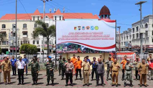 Manado – Wali Kota Manado Andrei Angouw memimpin Apel Kesiapsiagaan Terpadu dalam Rangka Antisipasi Bencana, bertempat di halaman Polresta Manado. Senin (25/10/2021).