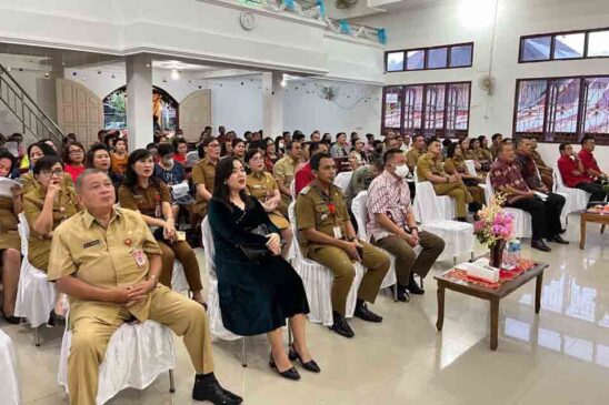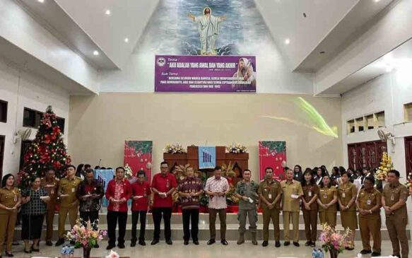 Wawali Sualang mengajak seluruh Jemaat warga untuk mengucap syukur atas terlaksananya safari Natal Pemerintah Kota Manado di Kecamatan Mapanget.