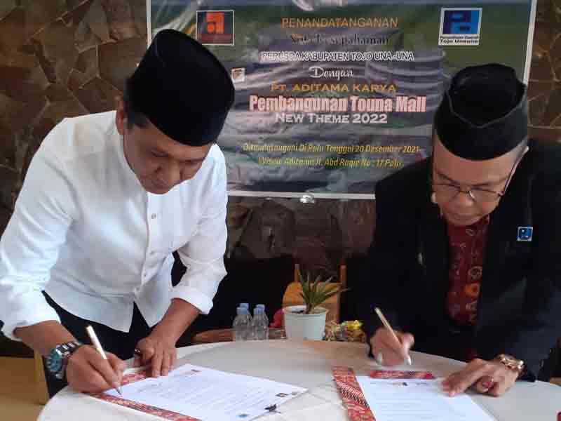 Tojo Una una – Momentum pelaksanaan penandatanganan nota kesepahaman antara Perusahaan Daerah (Perusda) Kabupaten Tojo Una una Sulawesi Tengah dengan PT.Aditama Karya, sebagai bentuk dan bukti terjalinya kerja sama dalam rangka Pencanangan Pembangunan Mall di Pusat Kota Ampana Kabupaten Tojo Una una. Senin (20/12/2021).